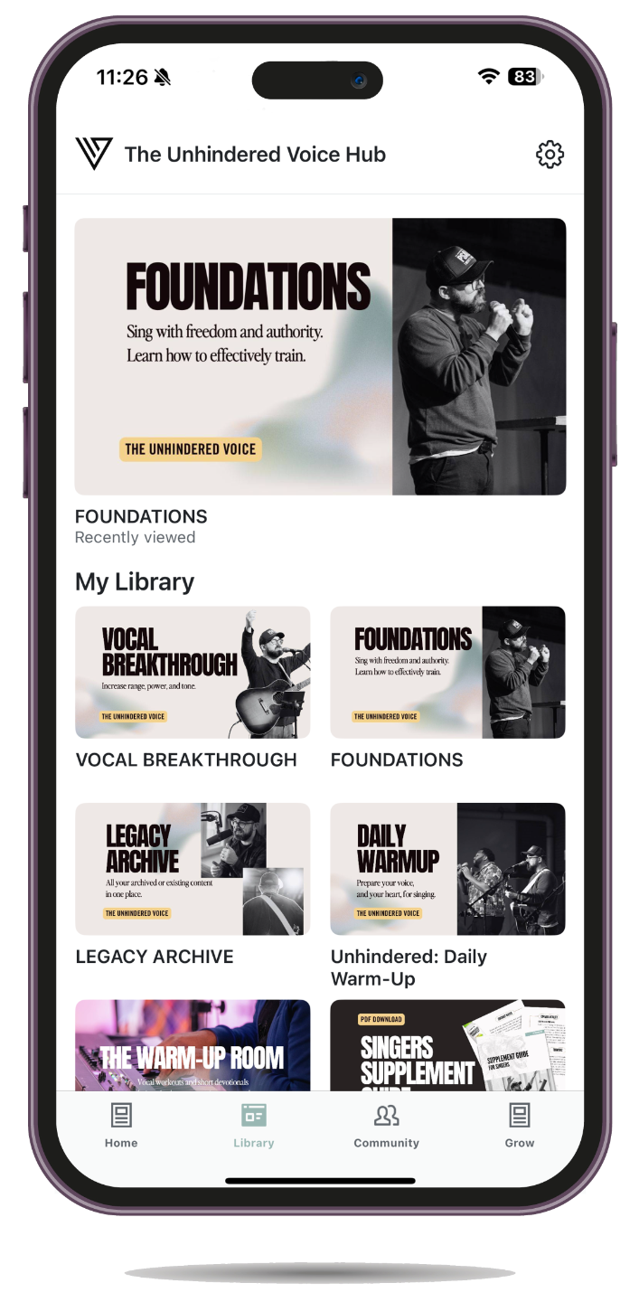 The Unhindered Voice is a thriving community of artists, worship leaders, and singers. It provides access to a wealth of training materials that you won't find anywhere else.